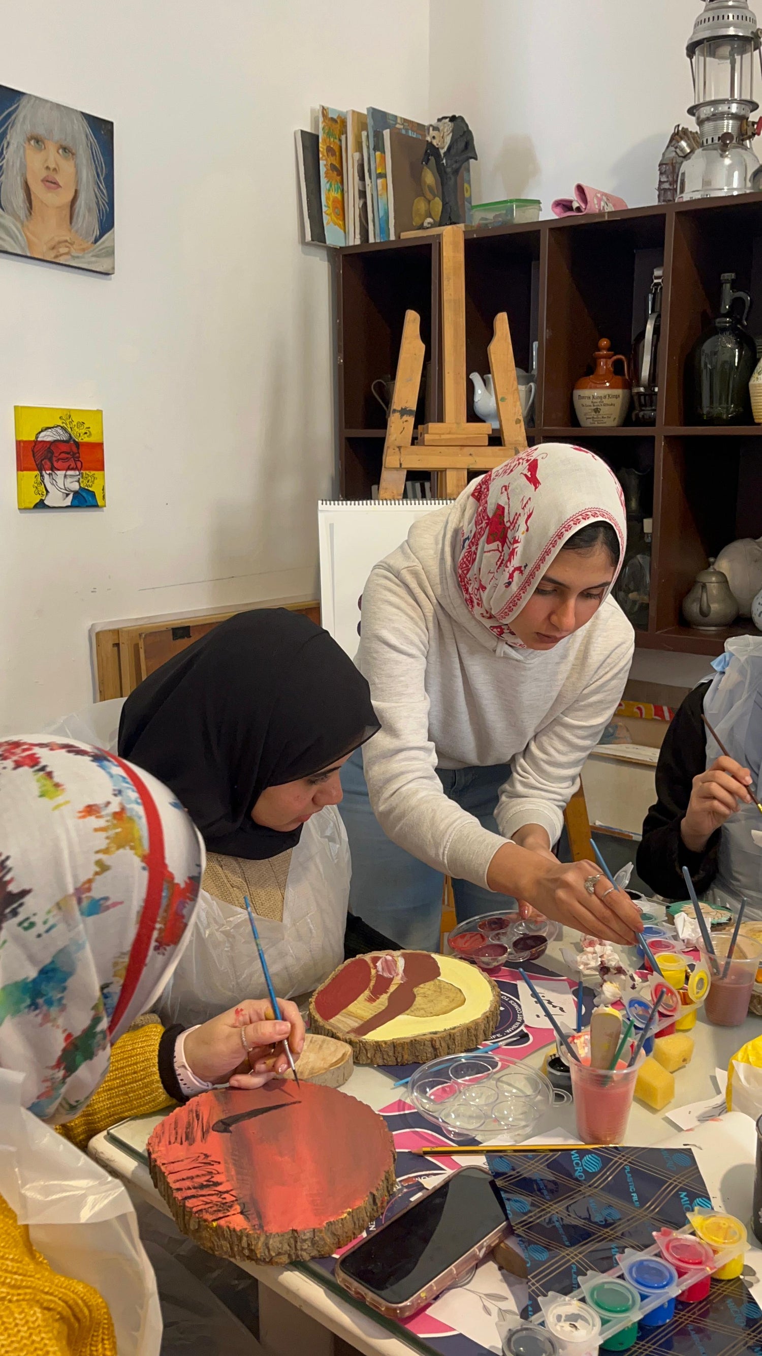 بدأنا بفن المفروشات المطبوعة ، ثم قدمنا شرائح الخشب المرسومة يدويًا ، وجميعها قابلة للتخصيص بالكامل. ومع نمو رحلتنا ورؤيتنا، توسعنا إلى ورش عمل الرسم على الخشب وكولاج الهوية ، حيث سعدنا بتعليم أكثر من 160 شخصًا حتى الآن .